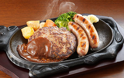 ビーフ100%ハンバーグ(デミグラスソース)と人気のソーセージグリル2本とコンビ