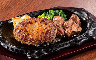 牛100%のハンバーグとカットサーロインステーキの人気コンボ。